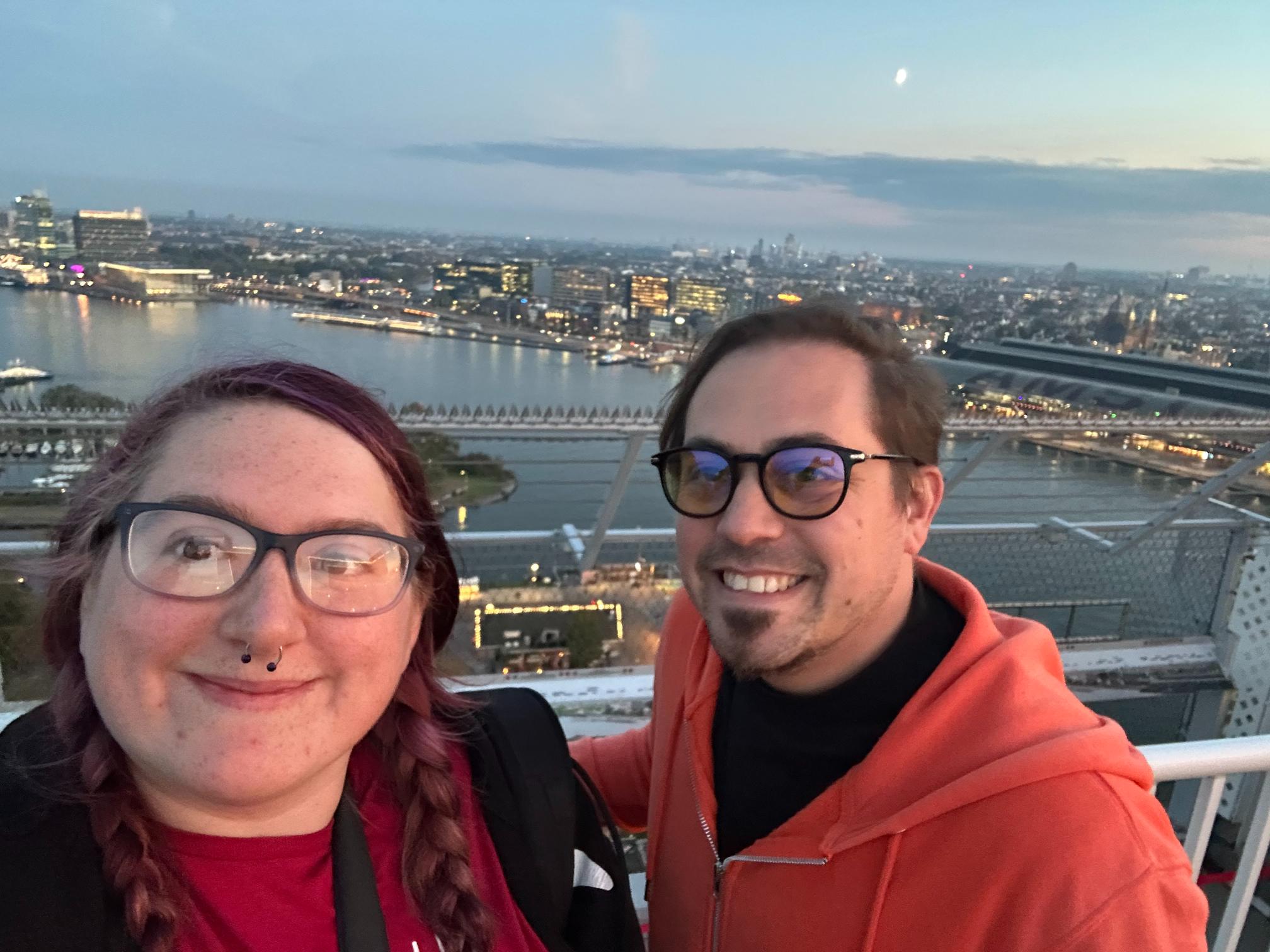 When we were at the train station in Amsterdam, hanging out just outside the Amsterdam Central airport, I saw the giant swings on top of a building. Casually, I said to Dann “do you think that is swings?” and he said “oh yes. I would never do that” but I knew, I would totally do that. I then made it my mission to do that. The A’Dam Lookout is a very touristy, very interesting venue with beautiful views of the main city, which you can book tickets to view during the daytime, sunset, or evening. We booked going in one of the evenings, right after sunset, which was fantastic.