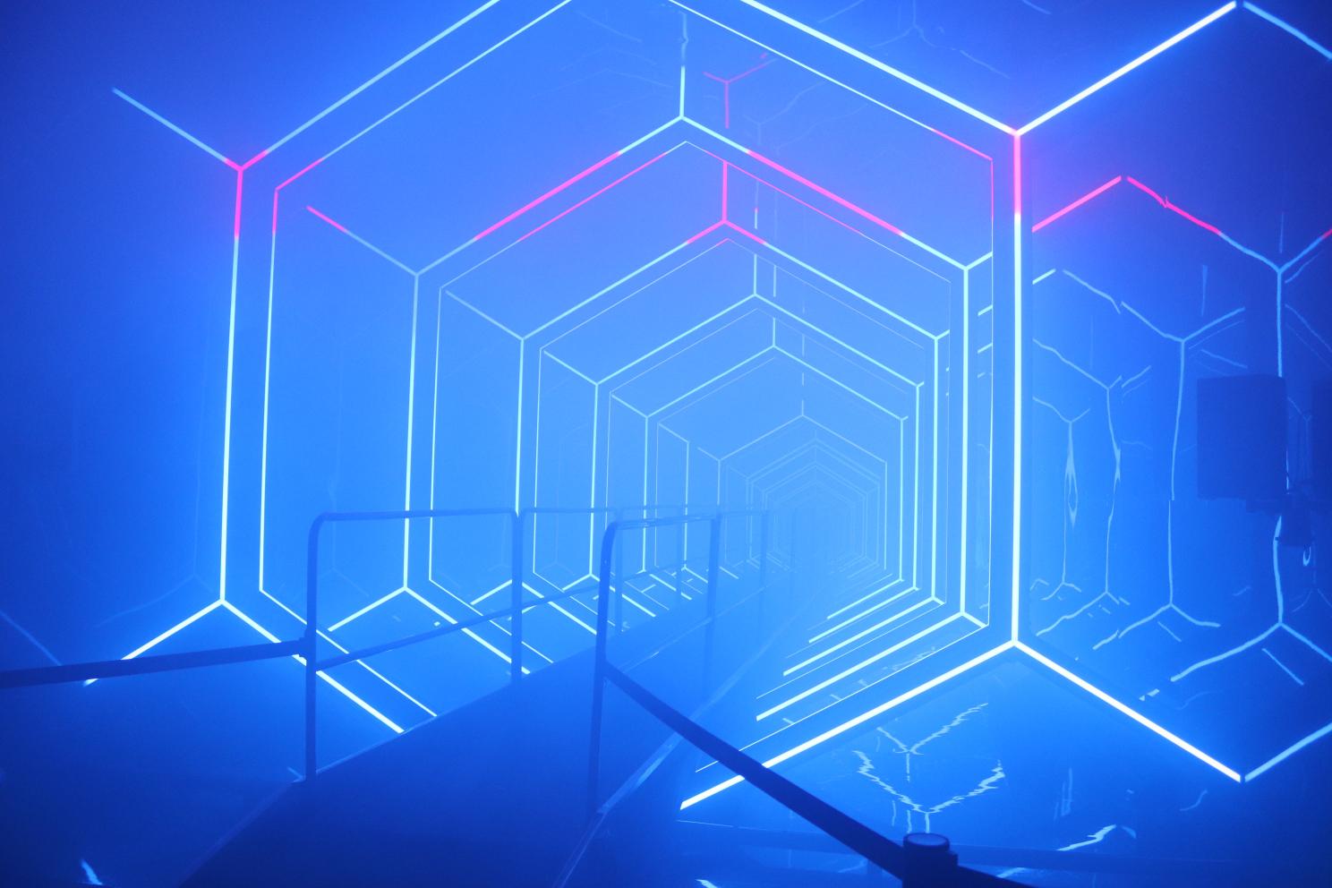 There were no other guides in AMAZE, but everyone was told to move forward when the lights around doors turned orange. The first room was a large bridge, going into fog, that had lots of lights going through it while the maze explained that this was going to be an experience about our future, a reflection on ourselves, and lots of other interesting things. It welcomed us onto the bridge, then made us wait while it continued it’s intro. The whole thing was set up in a very interesting way! The first room continued this futuristic theme, showing laser lights, but only showing us things in the room when it wanted us to see them. This light show was fantastic and I really enjoyed it – it’s probably my favorite part of the room. For the rest of the immersive experience, there wasn’t really any more communication from the maze, which I do very much feel would bring this up to the next level!