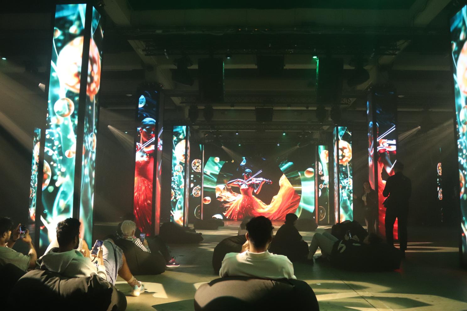 Some of the other rooms included a mirror maze, with a bunch of panels that showed AI versions of the pictures we took of ourselves, flashing in different outfits. Another room had tons of music and bean bag chairs, acting like a party after we pushed ourselves past dozens of mannequins (some of which had our AI faces on them) which also had a lot of AI. I do feel that the use of AI in this experience (and in general) isn’t great. There were a bunch of other rooms though to focus on! One was full of panels, which allowed us to control different aspects of a room. At first, Dann and I were on a panel that let us control the colors of the lights on the floor in front of us, along with all of the patterns when they lit up or if they strobe. It’s so fun! After a while, it then said to switch, so we went to the next panel which controlled the wall lights. Another controlled the music. It was just a lot of fun!