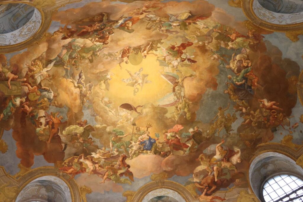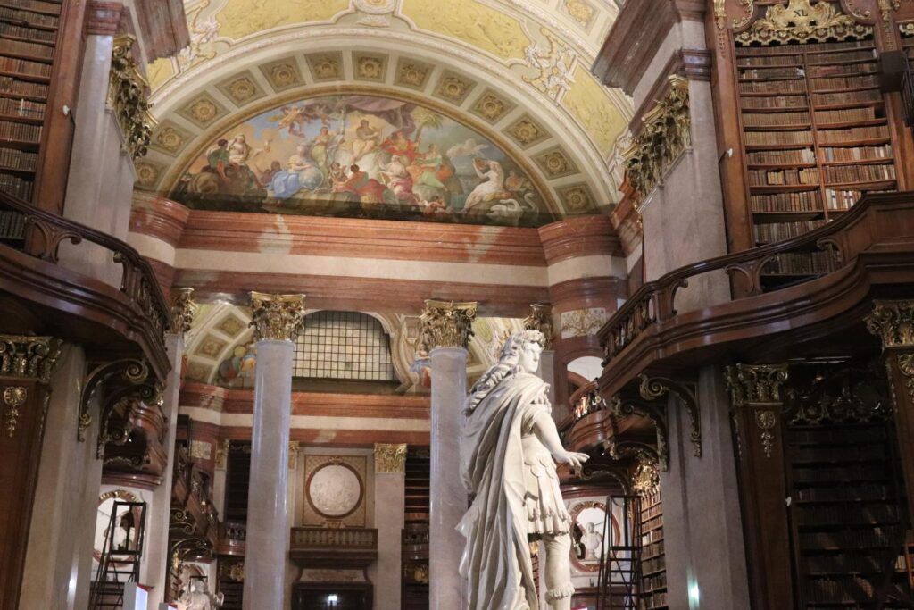 The inside of the Austrian National Library was absolutely stunning, with a lot of people stopping to take pictures with the beautiful backgrounds. The ceiling of the library was so fantastic too – I am so glad we got to see that in real life as the pictures don’t do it justice. Dotted around the hall there are also a bunch of different statues of people, which are interesting to see, and four different, massive, globes at each of the sides of the hall itself.