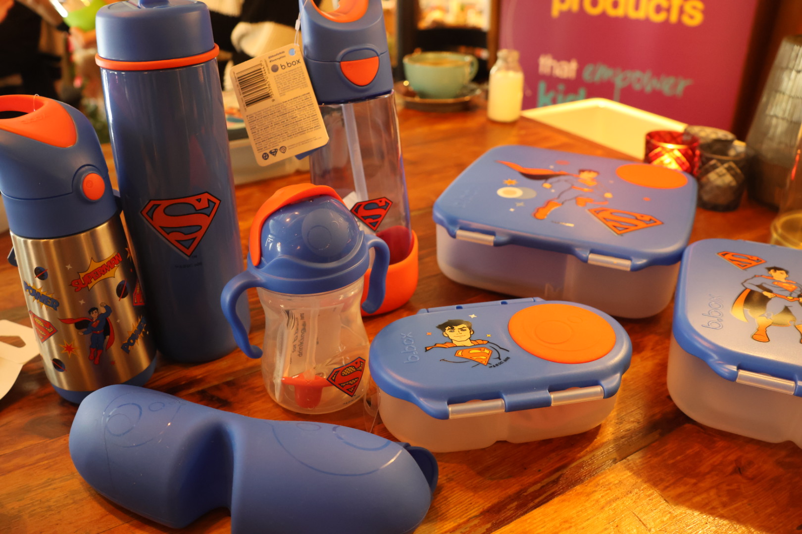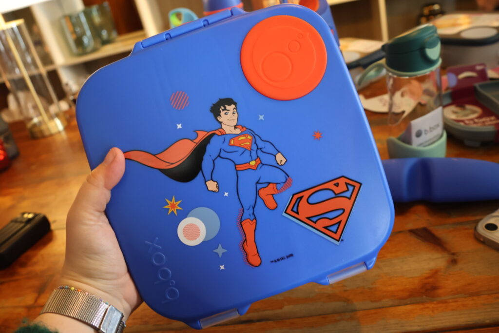 This range features a snack box, small, medium and large lunch box, a few different water bottles (including their insulated one), along with a range of baby items like bibs and sippy cups. It’s just a full range with an iconic hero on the front! Dann and I went along to their event in London where we got to go hands on with their new products, pulling them a part and seeing how easily everything can be washed and put back together. Dann said the color blue, which was all over the Superman design, reminded him a lot of the lunchbox he had as a kid, which had the same dark-blue backing.