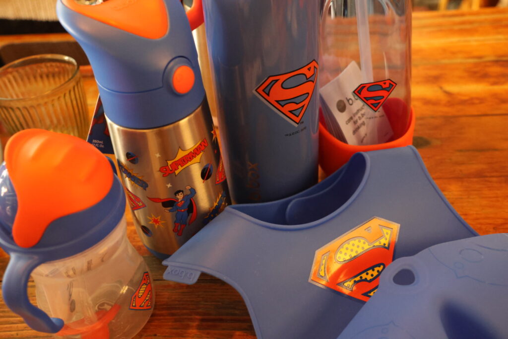 I do like the handles on these and the attention to detail – even the ice pack inside the larger lunchbox had the Superman logo. The sippy cup had a weighted bottom to the straw, so your child can get every last drop, which was weighted with the Superman iconic logo as well. All of these easily came together, with many of the water bottles having grippy bottoms, so they aren’t likely to fall over. B.box is a fantastic brand, and it’s neat to see what they are doing with iconic IPs that I am sure children (and adults who want a bit of fun in their lives) would be well interested in.