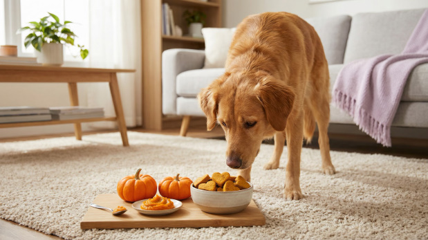 7. Use pumpkin treats for training, enrichment, and gentle stomach support