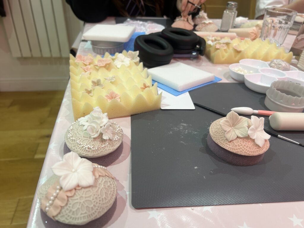Every month, Amelia and I go to a cupcake class! We’ve been doing this for well over a year (nearly two, I think!) and have not had a duplicate class yet. Sweet Designs by Jennie creates lots of new designs each month, however, the Flower and Lace Cupcake Class was a classic that we had not gotten around to getting to yet. It’s got a lot of fondant decorating, including creating little fondant flowers. Like all of the classes, Sweet Designs by Jennie has new tools and new techniques.