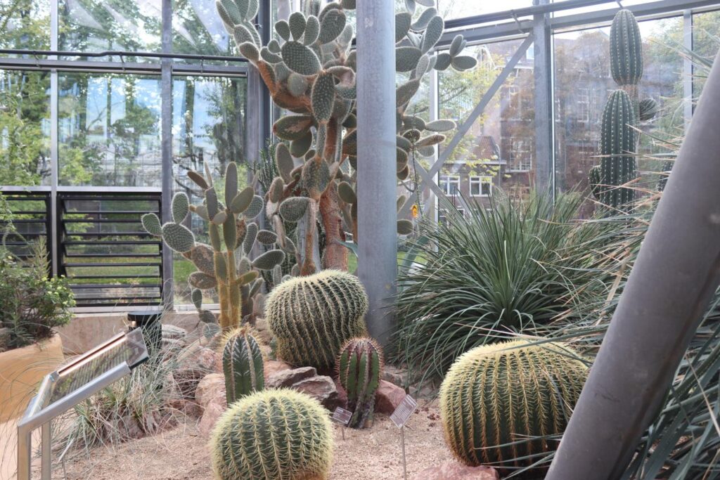Dann and I love walking around flower gardens, taking pictures of the different flowers and just hanging out with each other. Botanical gardens feel like such a nice way to slow down, so one afternoon while in Amsterdam, we figured we’d head over to De Hortus, which we saw on our canal tour. This huge botanical garden has a large outdoor area, which is where we started. There are a few different trails and maps for different walks, all featured just inside the entrance. There is also a meeting point for guided tours, which happen during specific events.