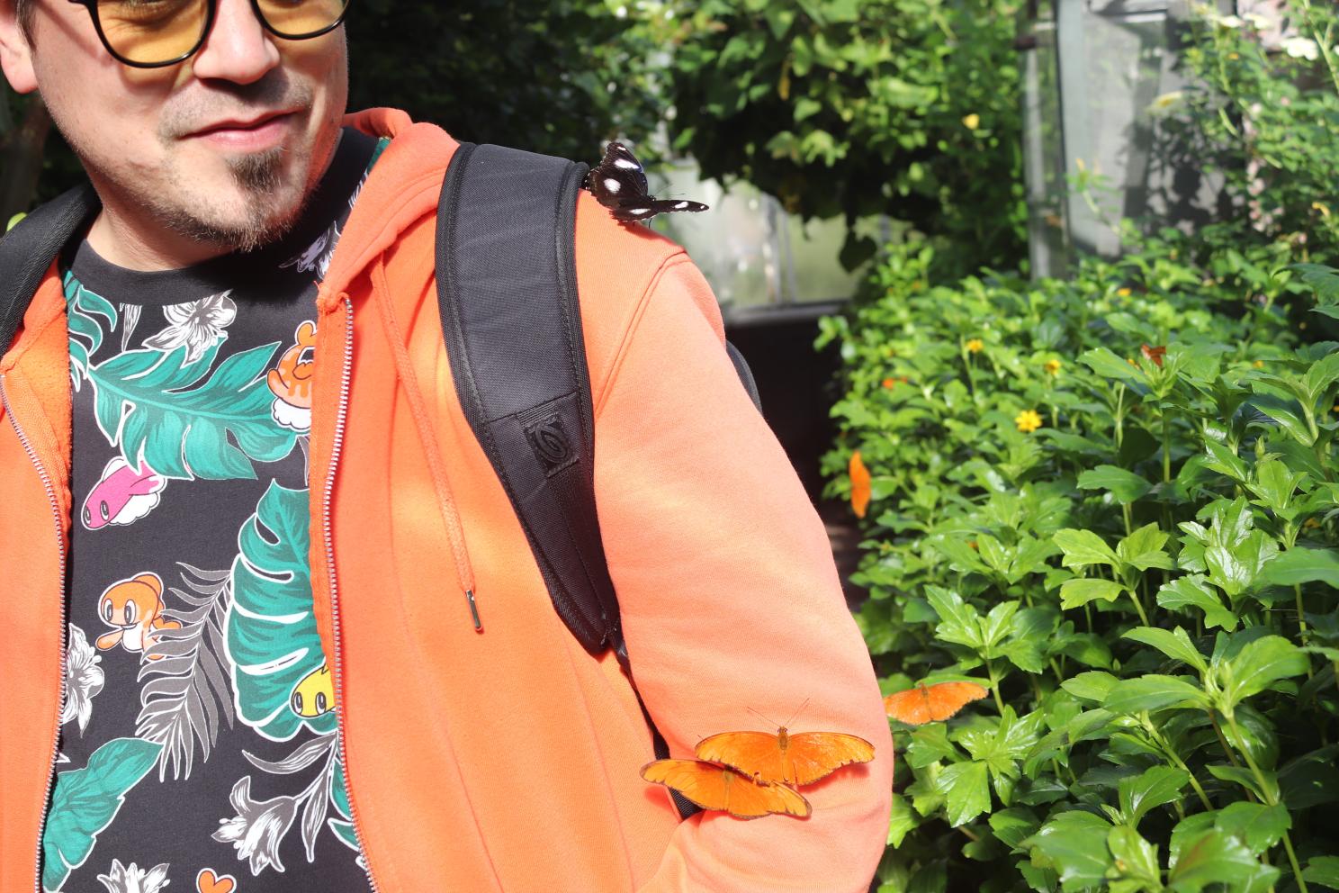 There were a few greenhouses at De Hortus, one of which is used as an education area, another that was closed but seemed to be a workshop of sorts, and a third which was a fantastic butterfly house. This butterfly house was the size of a greenhouse, full of plants, but inside were loads and loads of butterflies. For whatever reason, they kept landing onto Dann and hanging out with him, which was very magical – at one point he had three different butterflies on him at once.