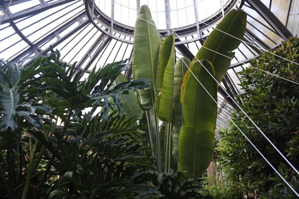 We then went into a huge indoor plant area, that sort of had large doors open to the outside. This place had stairs, so you can walk up and see the very top of some giant plants! It’s a great place for pictures. There were interactive spaces, where you could learn more about the flowers and push open little doors to see different seeds from plants that they have or see how a big plant grows throughout the ages. These were cute and felt like a good educational moment. Another big building allowed us to go into a warmer mixed outdoor and indoor area that had a bunch of plants we recognised, before going into an area where there was a projected video about gardens and plants on the ceiling. There was also a thing inside one area here, where you put your elbows on a table and could hear information about the plants if you covered your ears. It was wild!