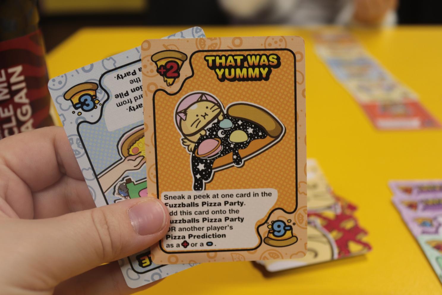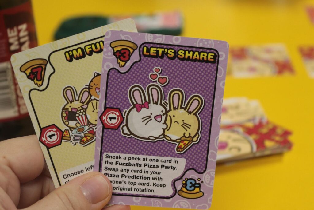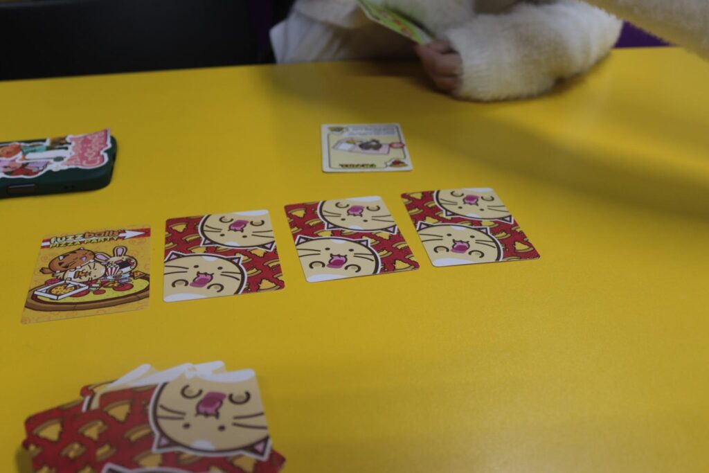 With that in mind, this does feel like a game that’s ideal for older audiences, especially ones that like messing with each other! We did like the designs of the cats and their chaos factors – which were a lot of fun. The little Fuzzballs are just such a cute design and it’s neat that they’ve created a card game. Amelia got on with the actual thinking and strategy pretty well, but it is not possible to see everything and completely predicte how many pizza slices you fully need, so it’s down to whoever is close enough.