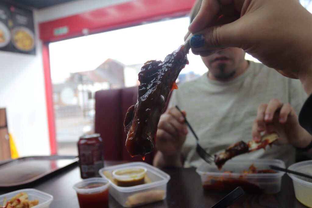 Dann came hungry and wanted to try one more thing; Lamb Ribs. I have never had lamb ribs before, but they were big, in a stick and sweet sauce, and tasted of lamb of course. These were very good, super well cooked, and the meat came off the bone nicely. We also got some Prawn Crackers, which feels like a classic, that Dann then used to spoon up the sauces he liked and the curry. You can get a free serving of prawn crackers too by leaving a Google Review for Gao Express! This is a neat offer.
