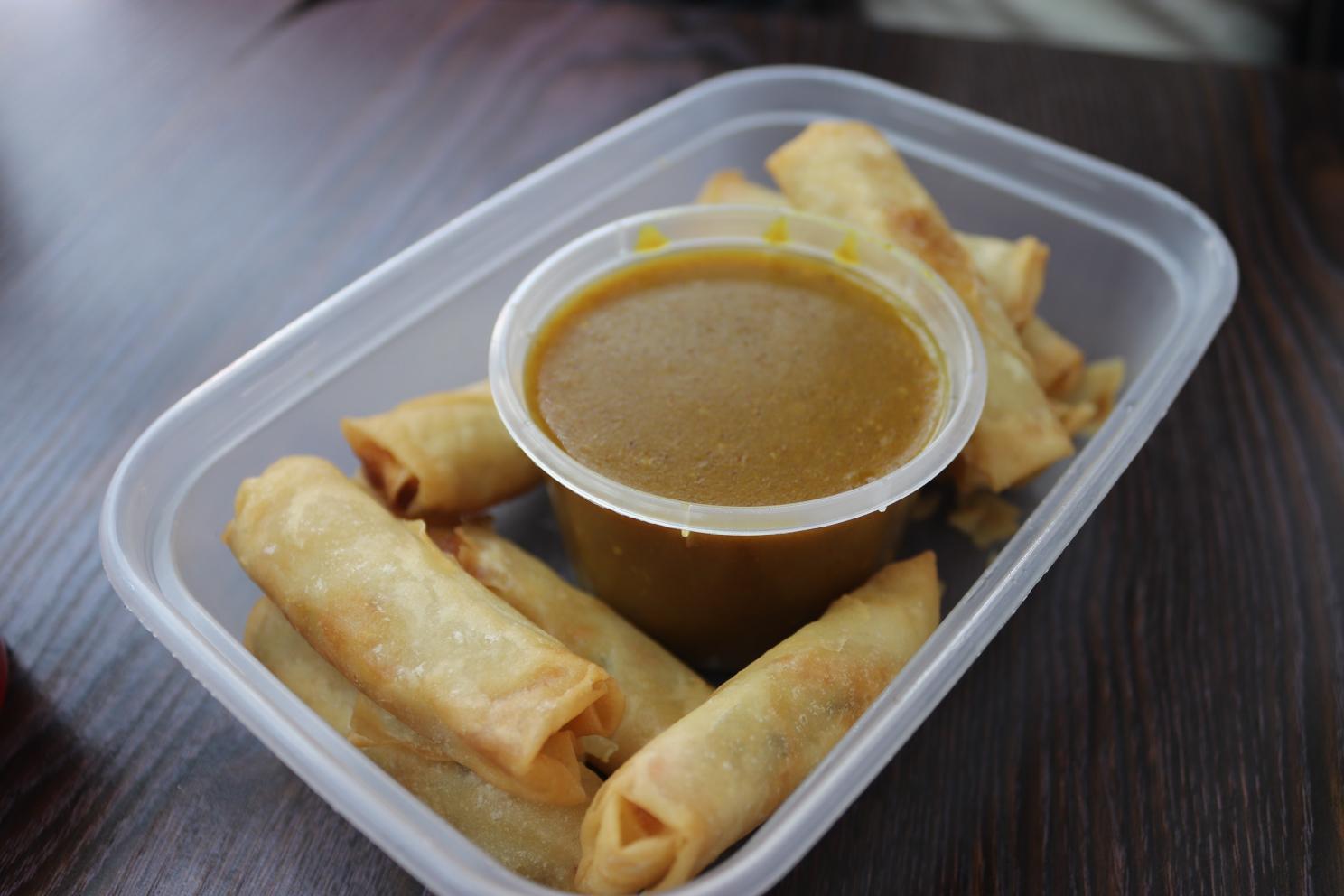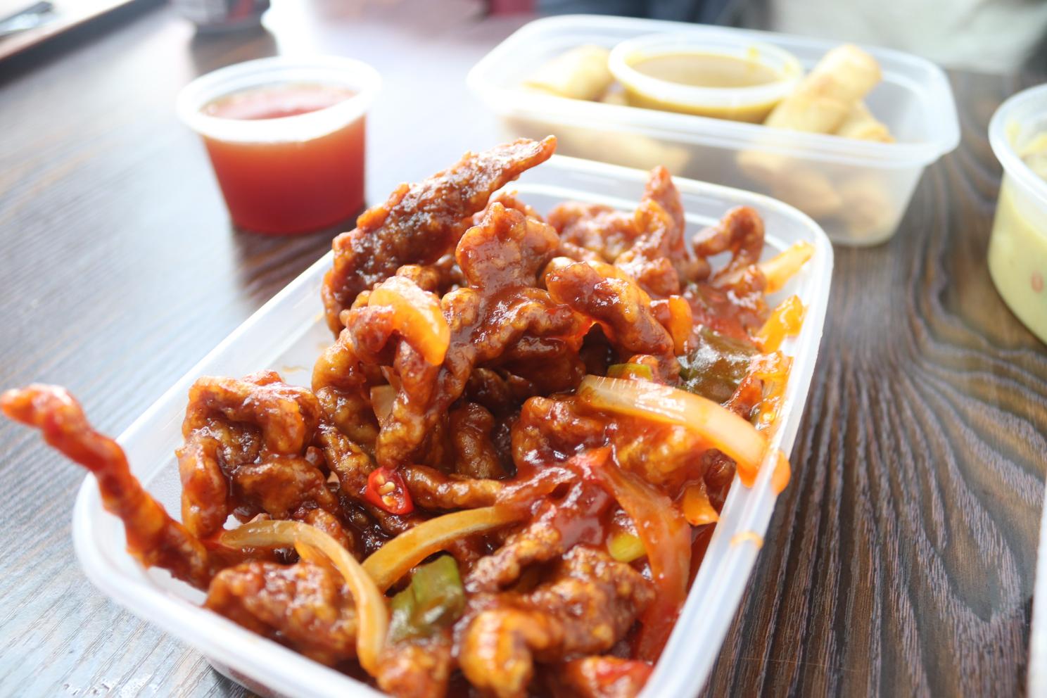 Dann said “you cannot not get spring rolls” so that’s what he wanted. These spring rolls were decent; crunchy, comes with a pot of curry sauce, plenty in a portion. I feel like spring rolls have tasted pretty much the same everywhere I have had them and these were exactly what I had expected. It’s simple, crunchy, easy eating! I got the Spicy Chicken with Peppercorn, which is fried pieces of chicken, in a crunchy batter, covered in garlic, spicy peppers, peppercorn, onion bits and pepper bits. I do really enjoy chicken like this – the crunch of them and the flavors of all of the spices. This came with a few pots of sauce to dip; a sweet chili sauce and a sweet and sour sauce. Dann enjoyed the sweet and sour a lot, which ended up being his favorite sauce from Gao Express. I liked both with my chicken but the chicken was also great without any sauce.