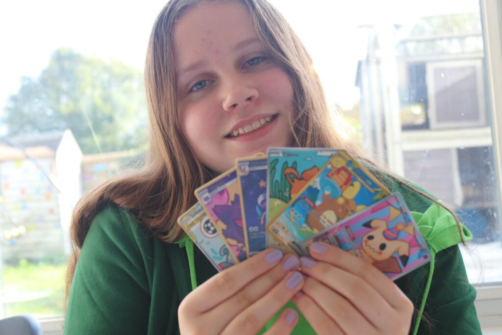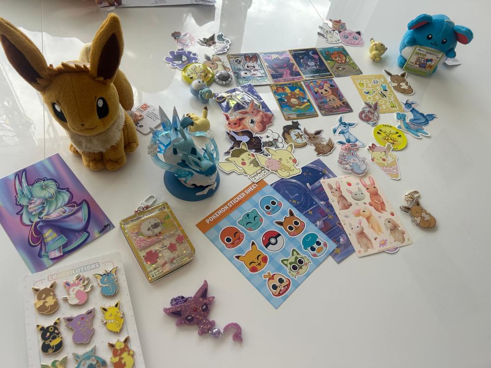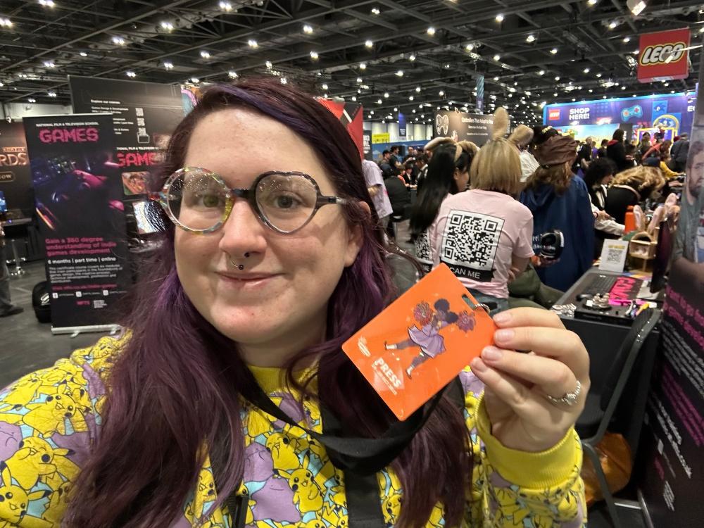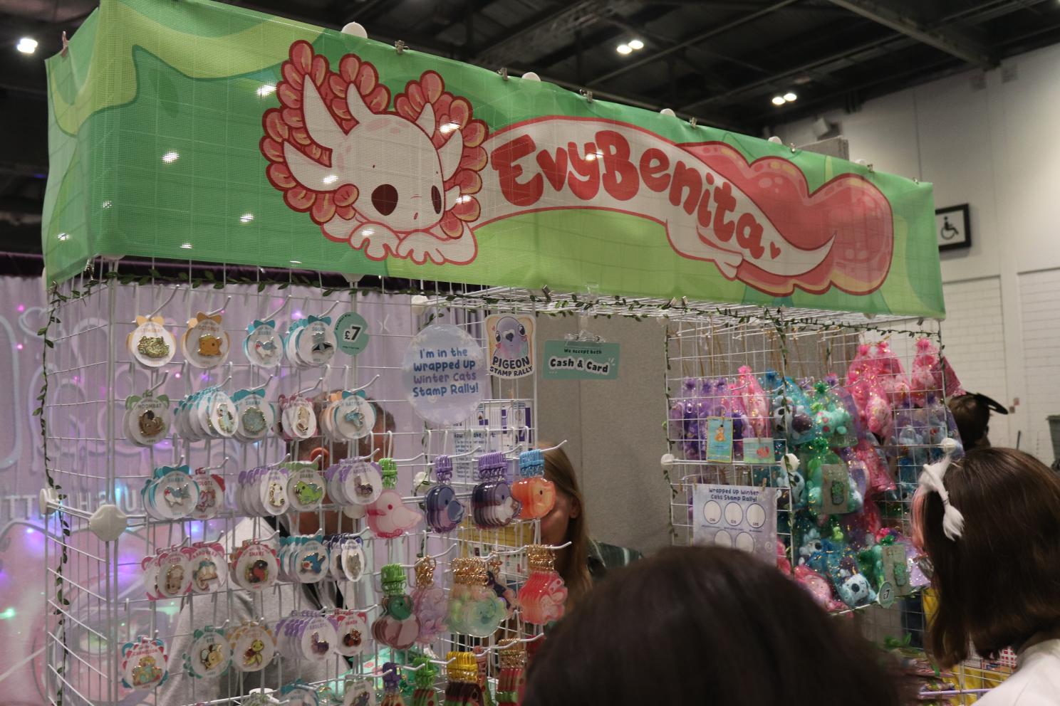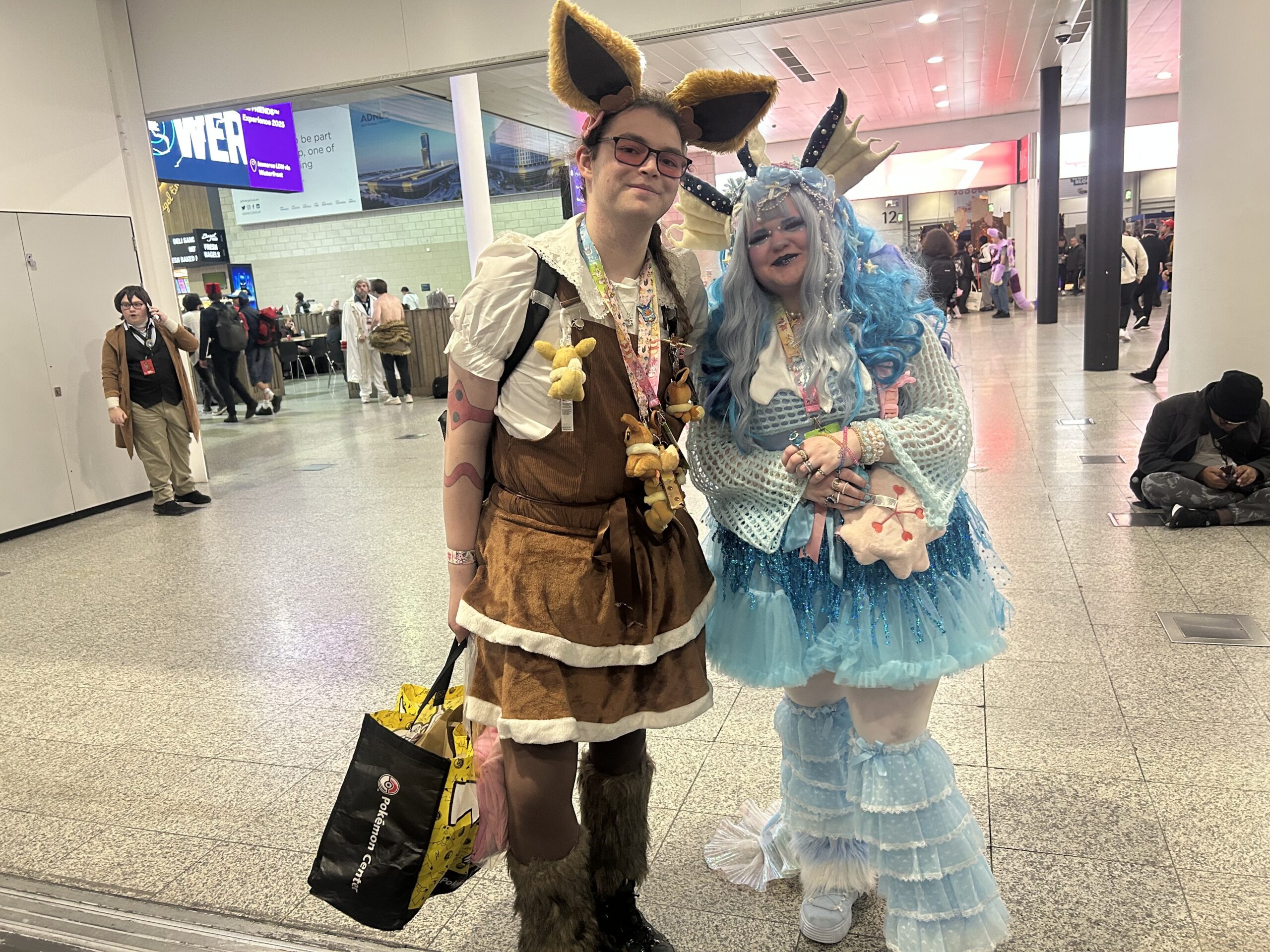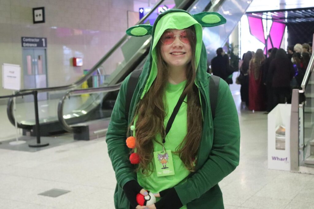 If you’ve never been to MCM Comic Con, has a lot of aspects to it. Firstly, it’s sort of a giant shop! There are tons of different stalls of items from DnD things, to swords, to Pokemon Cards. There were a few too many stalls that had drop-shipped items for my liking, but I do very much enjoy being able to shop such specific hobbies in real life. On the Friday, Amelia had the goal of shopping, so we spent a lot of time checking out all of the different stalls. She ended up with primarily Pokemon themed items, which is fitting. There were a number of artists that took part in a special Pokemon card event, where you could go to their specific stalls and ask them about these cards that they had designed, and then trade them for a card of the same Pokemon. We collected a bunch of the cute ones of these which was like a scavenger hunt! A lot of stalls actually had these micro-events. Amelia gym battled (dice battled) a shop owner to get a badge, and if you collected all of those, you could get a lanyard, for example.