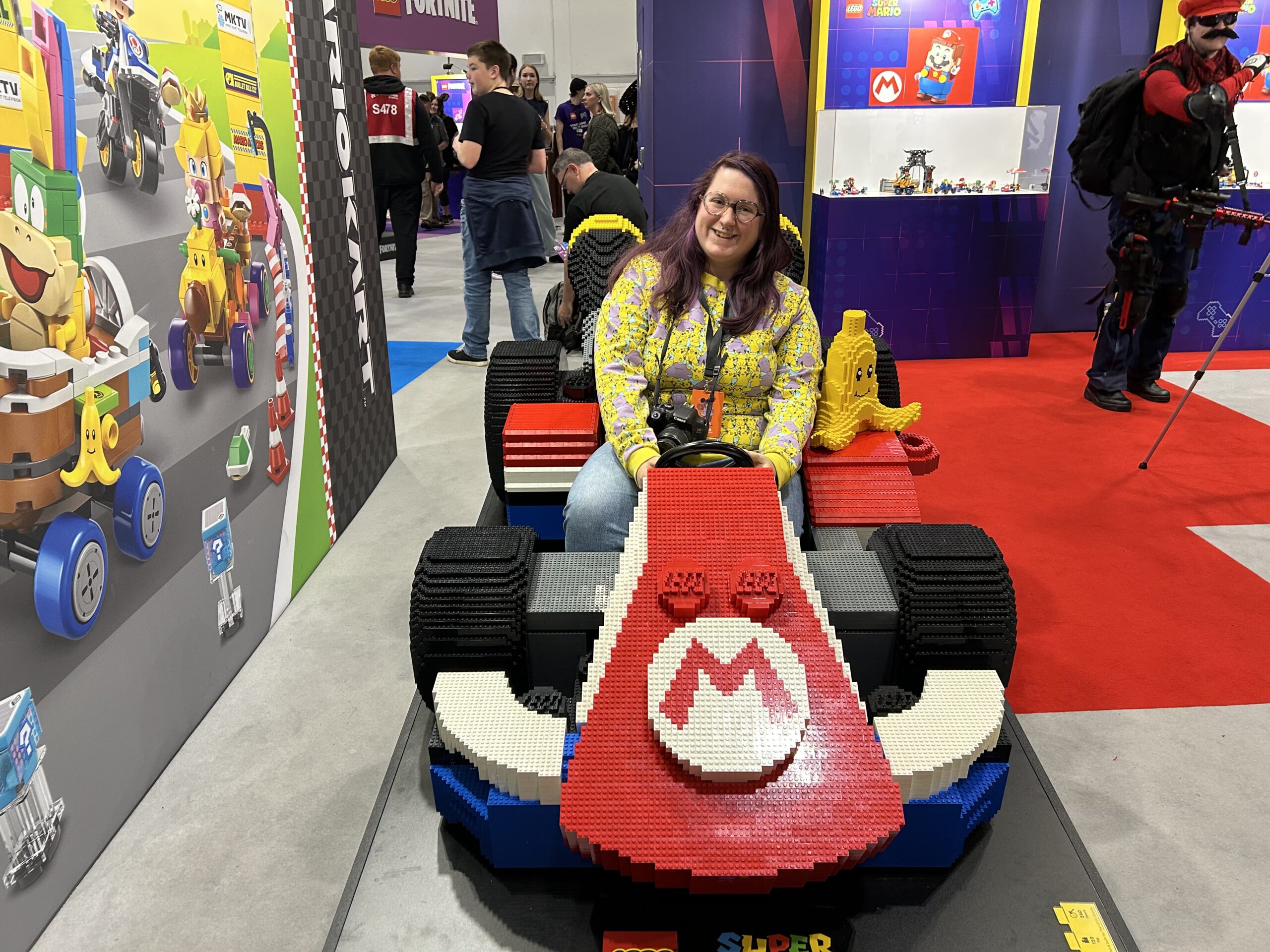 London MCM Comic Con also has a big area for independent artists, where they are selling their own art. We both very much enjoyed checking out all of the cute stalls here, and there was plenty of Pokemon fan art, along with basically any other anime that you’d enjoy. Along with the sort of art stalls, there are a bunch of stalls that have characters or big displays. The Lego stall had a little museum of Legos that were built and a giant Lego car that you can take a picture in – and if you do, you get a free sticker sheet. There was a Pop Mart stall that had a character all dressed up for pictures too, which was extremely adorable. There are other interactive areas of London MCM Comic Con like talks that you can listen to by famous actors, signings being done by them, a wrestling ring, a Asian-Pop stage, and even a giant DnD area where you can build your own character and have an artist draw what you’ve chosen.