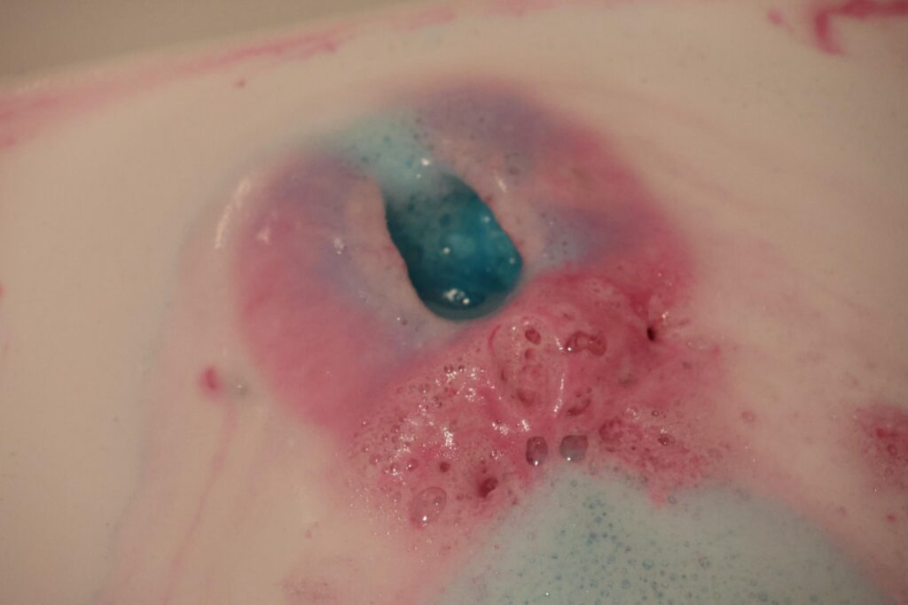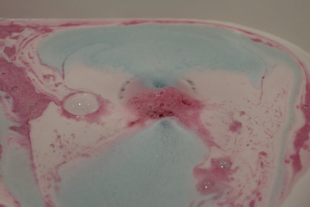 I always feel like this bath bomb is best used after a long day, as it just feels like relaxation and I always find myself ready to sleep once my bath is over. There are small flecks of glitter that are in this bomb, which are bio-degradable, so can go right down your drain. These don’t stain or anything but do add a little bit of magic to your bath.