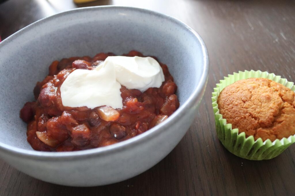 Autumn means soups and chili! We have our list of our family’s favorite autumn soups, if you are more of a soup person. This chili is super easy to make; I cut up some onion and bell pepper, and put them into a crock pot along with a bunch of cans of beans (drained and rinsed) and some cans of chopped tomato. Then I filled the rest with water and let it cook all day. I made some corn bread muffins to go with it and topped the chili with cheese or sour cream. It’s a comfort food and one of Amelia’s favorites.