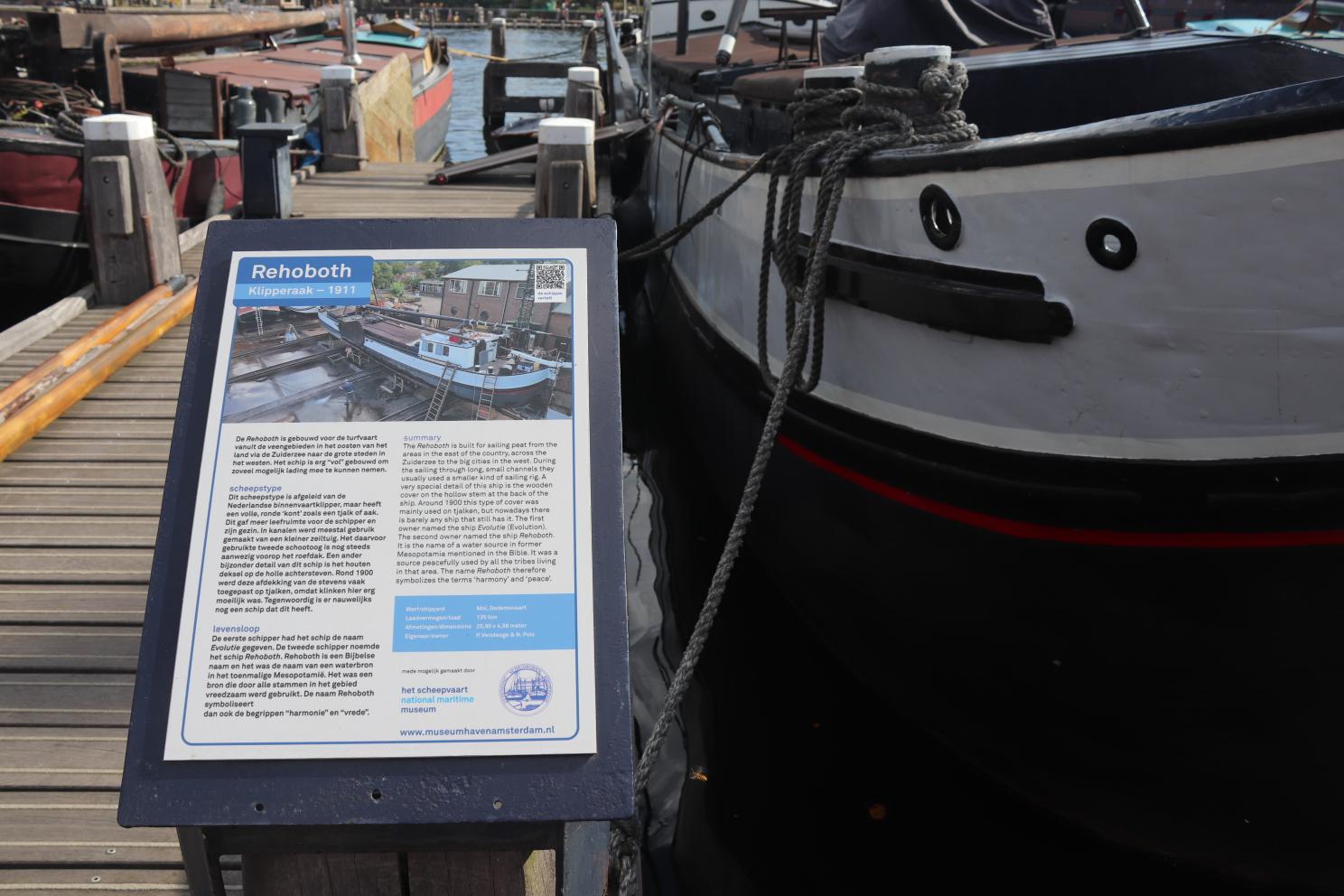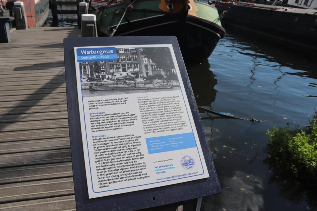 The Museumhaven Amsterdam also has a bunch of different signs that give information on these various ships, which are kept in very good conditions year round. You can read these panels, learning a summary in English about why the ship was built, when it was active sailing, and what it was used for. You can also scan the AR code on the panel to listen to an audio version of the ship’s story.