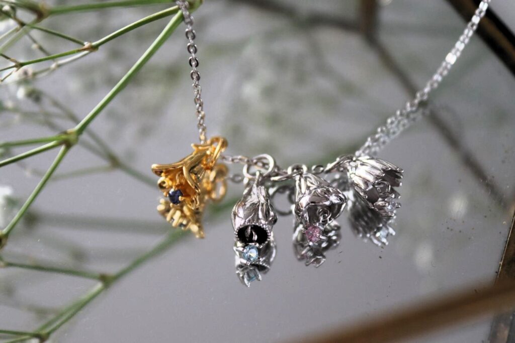 Now, on a slightly more chaotic note for the number of birth flowers I wanted to show off, I also picked up the Birth Flowers Necklace with Birthstone Charm from Callie. This necklace has larger, 3D flower charms each with a birthstone hanging out of them. Much like any of their jewelry, you can select the chain color from three options; Gold, Rose Gold and Platinum. I picked Platinum. From there, you can add up to six flowers to add. Each flower has the same three color choices, along with a flower and birthstone combined choice. I went with a gold birth flower for Dann, and then platinum birth flowers for Kai, Amelia and Robin. These are so stunning, and when the necklace is on and sits flat, you can really see all of the details from the flowers. I do feel this necklace most reminds me of my grandmother’s necklace, due to how many little flowers are on it. It’s such a sleek design and I can see these charms being worn individually as well.