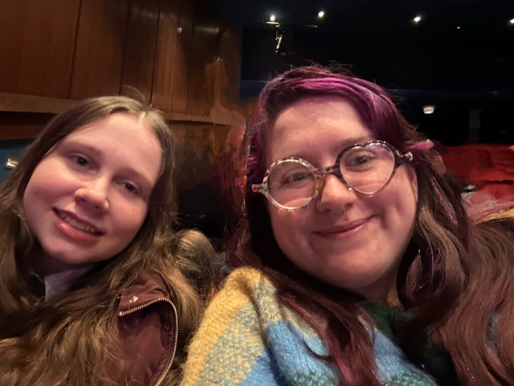 There is a lot of interaction from the audience in Rachel’s Perfect Show; from shouting out answers to laughing out loud… one person was given a bag in case Rachel pushed a button for a bag performance, which she did, and they had to fight Flo with the bag, basically. There was an entire fight scene and a big song about one guy getting a job. It’s just random, purely entertaining, and some bits are just so for Rachel. I particularly loved the the snack-related dance that resulted in Rachel getting to pick a snack. Amelia’s favorite bit was Rachel telling one of the sleeping people (who she did know) to lay back down and stay asleep, on stage, when he tried to get up.