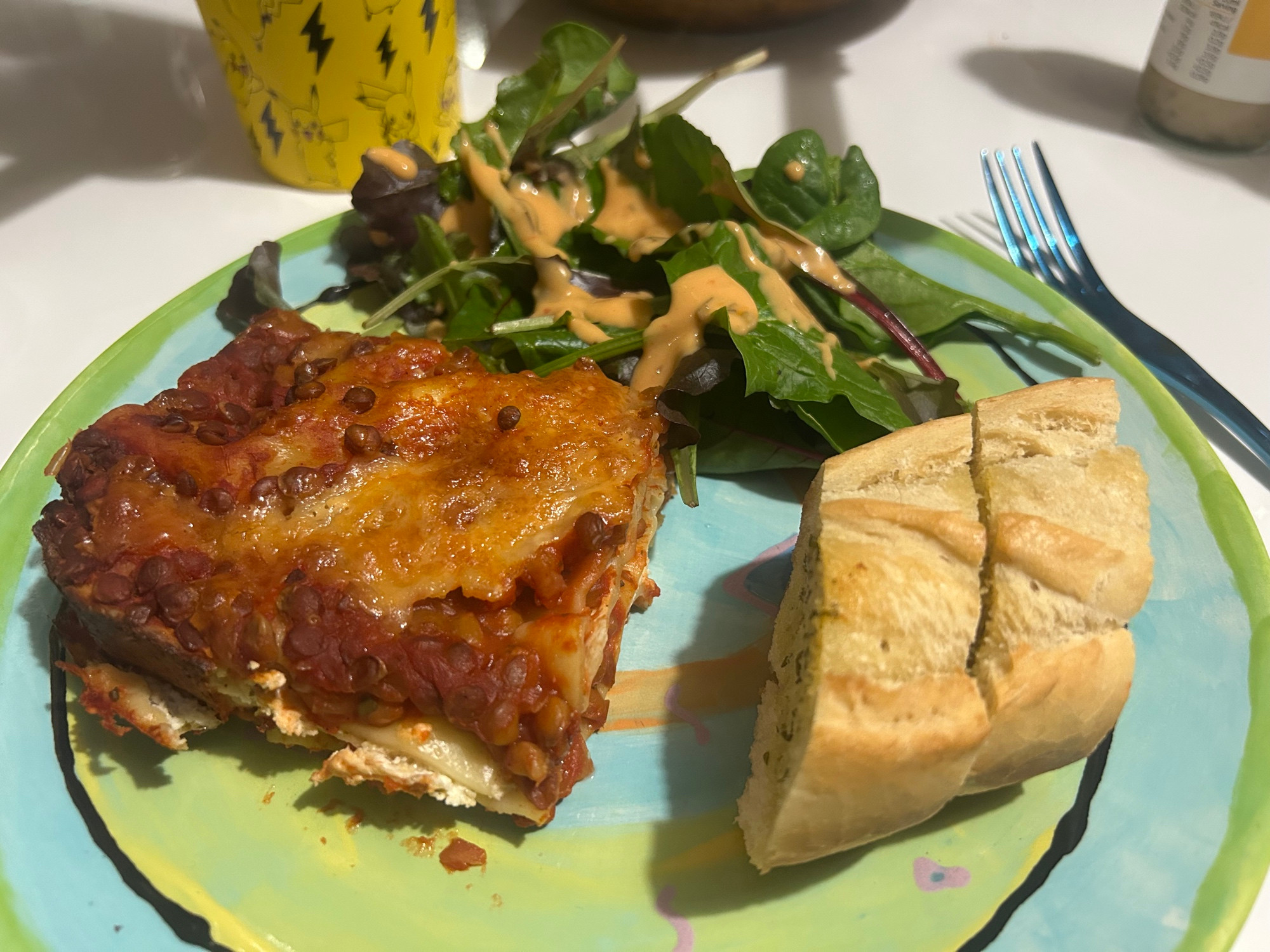 Today was back to normal! I woke up, did packed lunches, and noticed that a bunch of street artists are spray painting a few of the walks that I take almost daily. This is a part of our town trying to reinvent itself, and I am glad to see more color especially with all the gloom! It is a tabletop day, so I prepped some vegetarian lasagna with lentils, and made some puddy-based pies. We played Spot the Intro, which was just an OK game, and I was very happy to see all my friends. Tuesdays no longer have Pokemon, as they’ve removed the in-game event, which is a bit of sad point!!