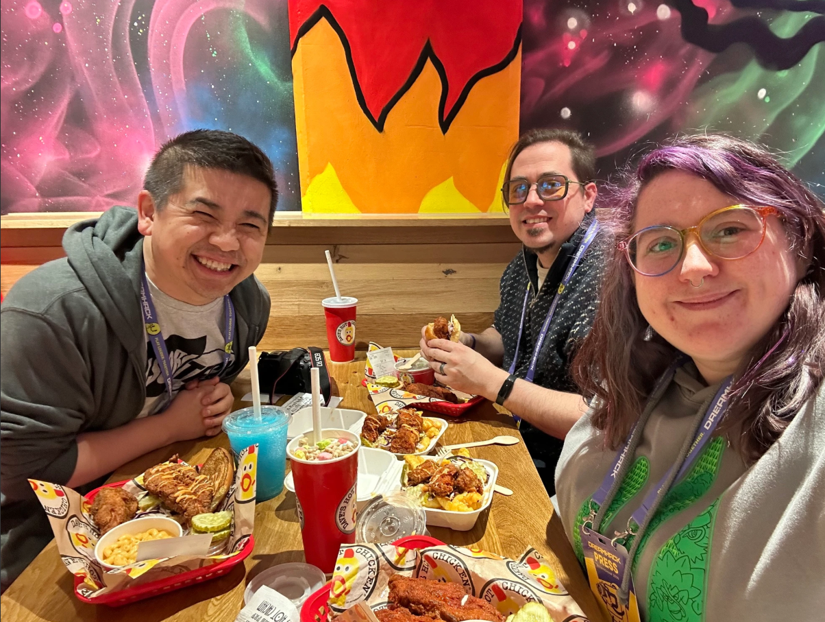 This morning, we woke up and got Kai and Robin ready for the day, playing some games together before they headed off. Dann and I then went into town to run some Pokemon Go Max battles! This was so fun as it was the retro-style chunky Pikachu. Once the event was over, Dann and I decided to go to DreamHack early, as we were invited as press. We were just going to go Sunday, but decided to go so that we could hang out with Quang. DreamHack had just a few games, so we arrived, met up with a bunch of our friends, and stayed until closing so that we could catch some dinner with Quang. We went to Dave’s Hot Chicken, which had fantastic mac n cheese, and then headed to a hotel for the night.