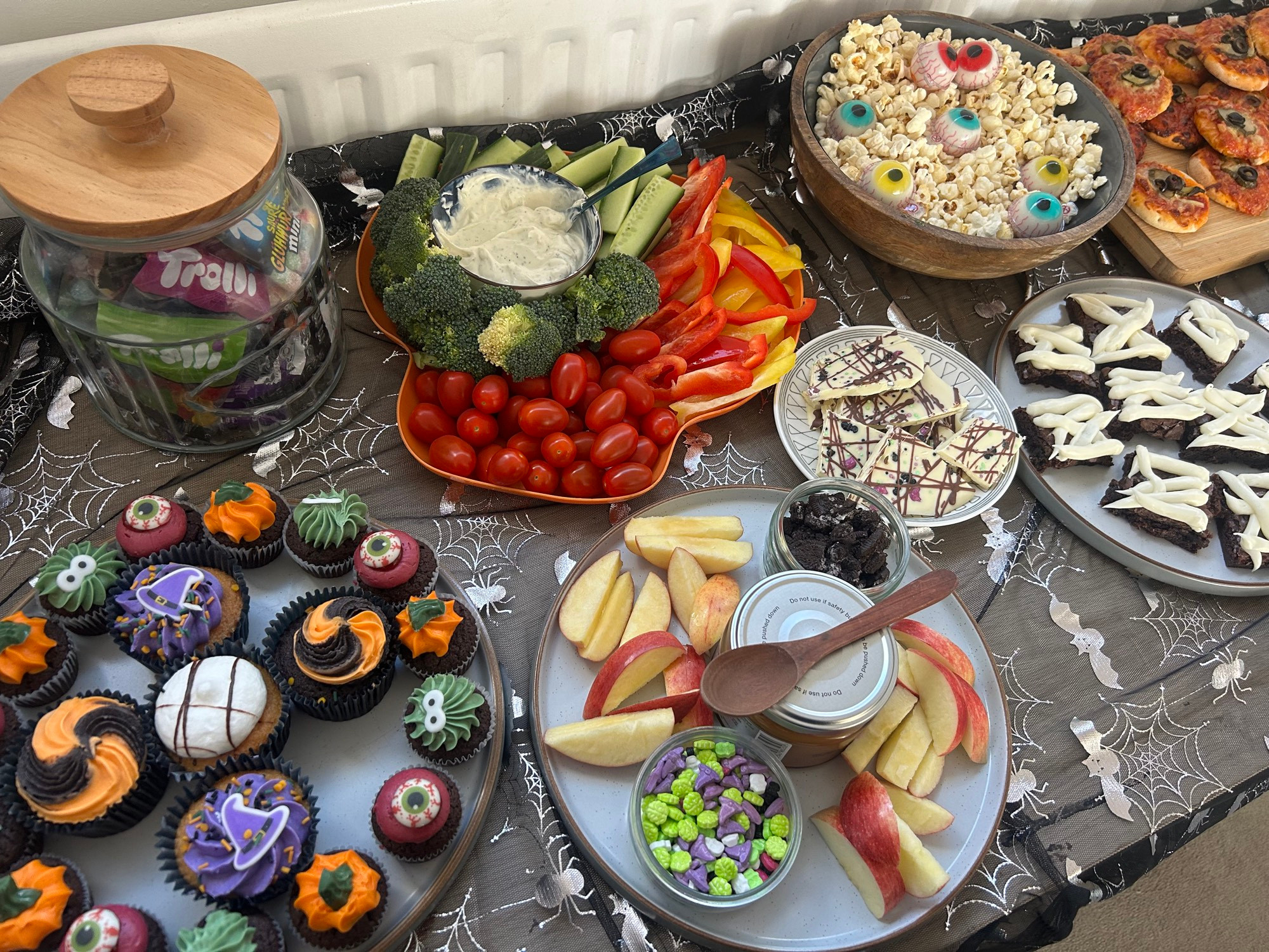 Every year we have a massive Halloween party with all of our kid’s friends. This year was no different! We’ve got a post on tips for planning a Halloween party, as we have been doing it for so long. I got up early and started putting out the final decorations, arranging tables, and getting some baked goods made. Robin was up shortly after, excited as ever, and started helping out. Amelia followed suit! Everyone came over at lunchtime and stayed until dinner, and it was so much fun. Kai had some friends up in his room, which we turn into a gaming space for them, and everyone else played all throughout the house. Towards the later end of the party, I went up town to run a Gigantamax Day in Pokemon Go, while Dann held down the house, before returning. It was a long day, but a fun one!