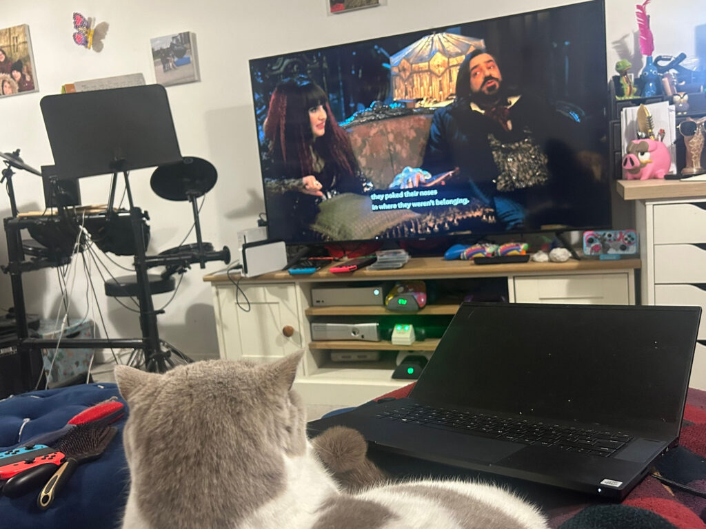 Today was a low-key day of work. I woke up, did a bunch of work, got the house ready for the day… I picked up Robin from school and we all headed home. Kai went to the gym, on his bike. We had some issues with his behaviour when he came out of school, but it turns out he choose to have cheesecake for breakfast, and there wasn’t food provided that fit his diet due to his fitness at his other house, so he choose not to really eat anything – which is why he was acting so horrible to everyone. This meant that I needed to fix around 2000 calories worth of food for his dinner, so there were lots of chatting and cooking with him and for him, so he knew what he should be eating. Robin started painting a cat mask she asked us to get her, which also has some fur that she is gluing on, along with a bunch of stars. Amelia primarily did druming and played Pokemon on her Switch, though we did plan out some of her birthday party next month too.