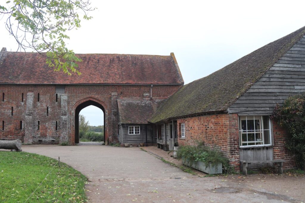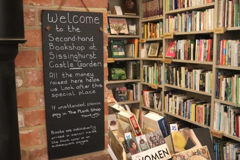 The first thing we saw was the cafe. Sissinghurst Castle Garden has both a cafe and a restaurant (with the restaurant offering more hearty meals like soups, pies, and the like). The cafe has a bunch of drinks and pastries, along with a used book library and a small shop attached to it. This building also has a plant shop, with plants from the gardens themselves being sold. We grabbed a chai each and a slice of a very delicious almond, cranberry and orange cake, filling our stomachs before heading into the main area. You can purchase tickets for Sissinghurst Castle Garden inside the main area, which allows you to go inside the castle garden entrance. There is a building, called the bellows, which has a breif history on the estate.