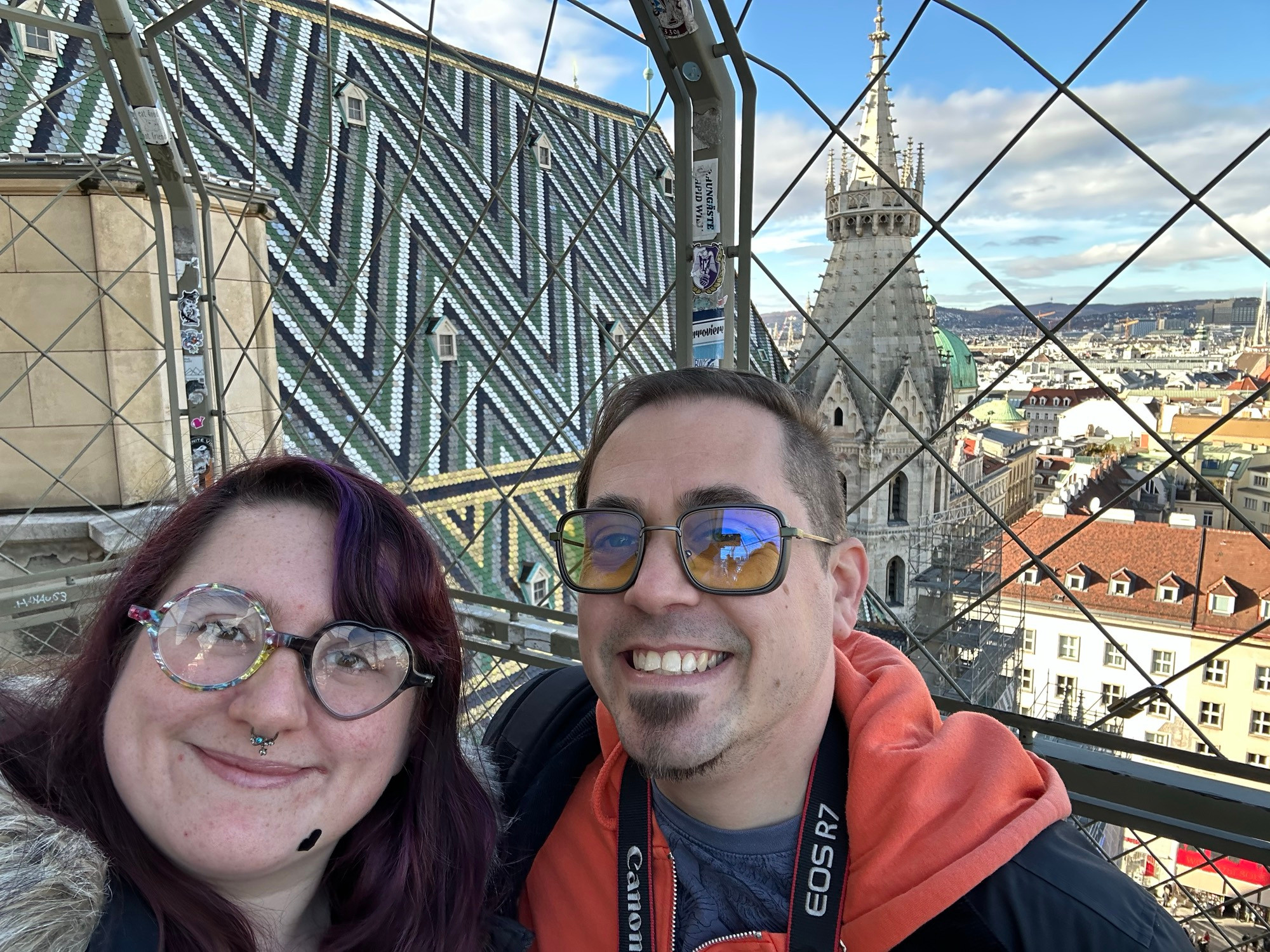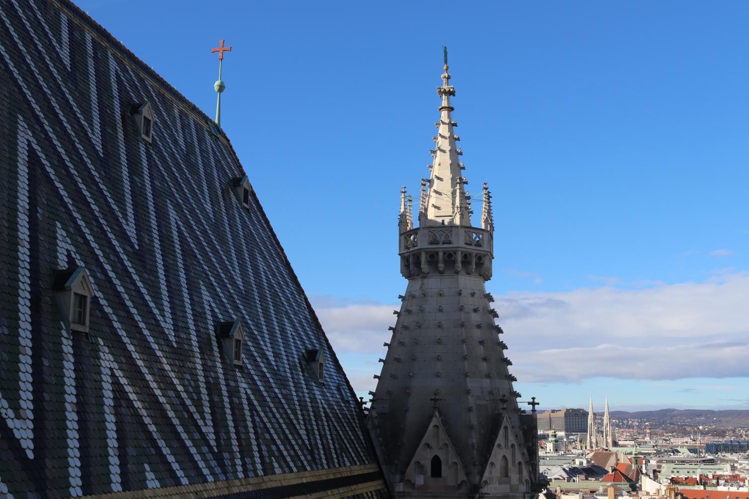 St. Stephen’s Cathedral is a Romanesque and Gothic cathedral, which was largely created by Duke Rudolf IV, and is actually build on the ruins of two earlier churches, with a mutli-colored tile roof. This roof, we were told, was actually a controversial design choice, as it’s very much a beautiful, and easy to identify design with birds on one side and a stunning pattern on the other side. We actually got to go up one of the towers, which does cost an additional fee (as the main cathedral is completely free to enter) and see the tiles up close! The view from the bell tower is fantastic, with the option to take the stairs or a small elevator.