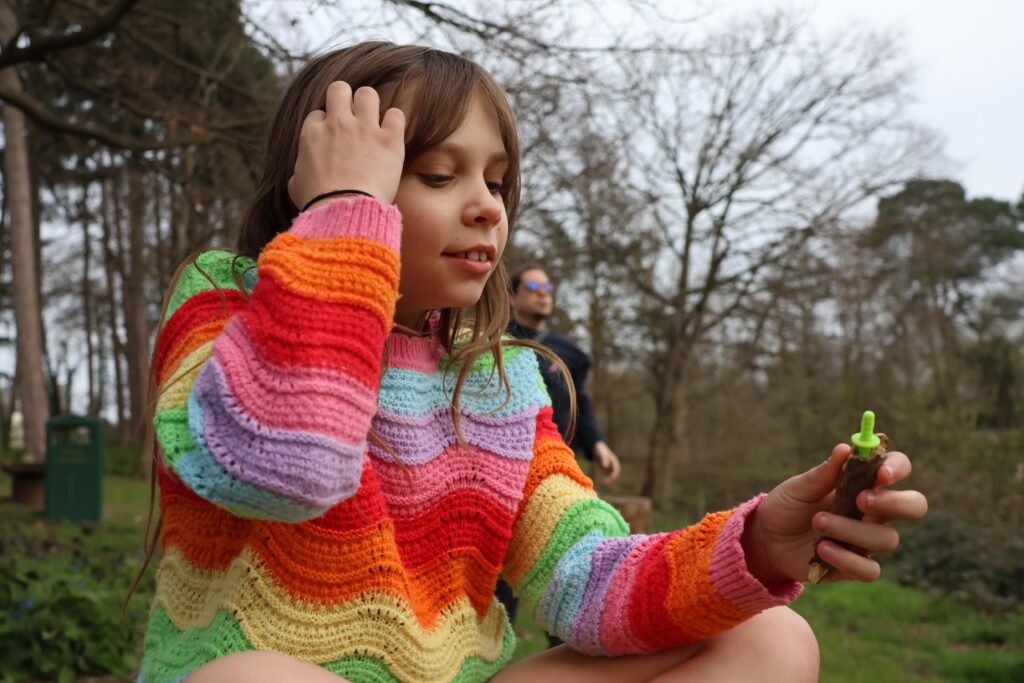 [Ad – Gifted Products] The weather has been fantastic, there has been very little rain, so it’s time to check out some toys that encourage outdoor play without their phones! The Terra Kids Connectors – Construction Set Figures is a fantastic mix of plastic pieces, corks and thin wooden rods, along with a tool to make holes in your sticks to create your creatures. Robin started off by taking a little walk around our local pond, picking up all sorts of thick sticks along the way. She gathered up so many options – which turns out was very good – as having options always does help.