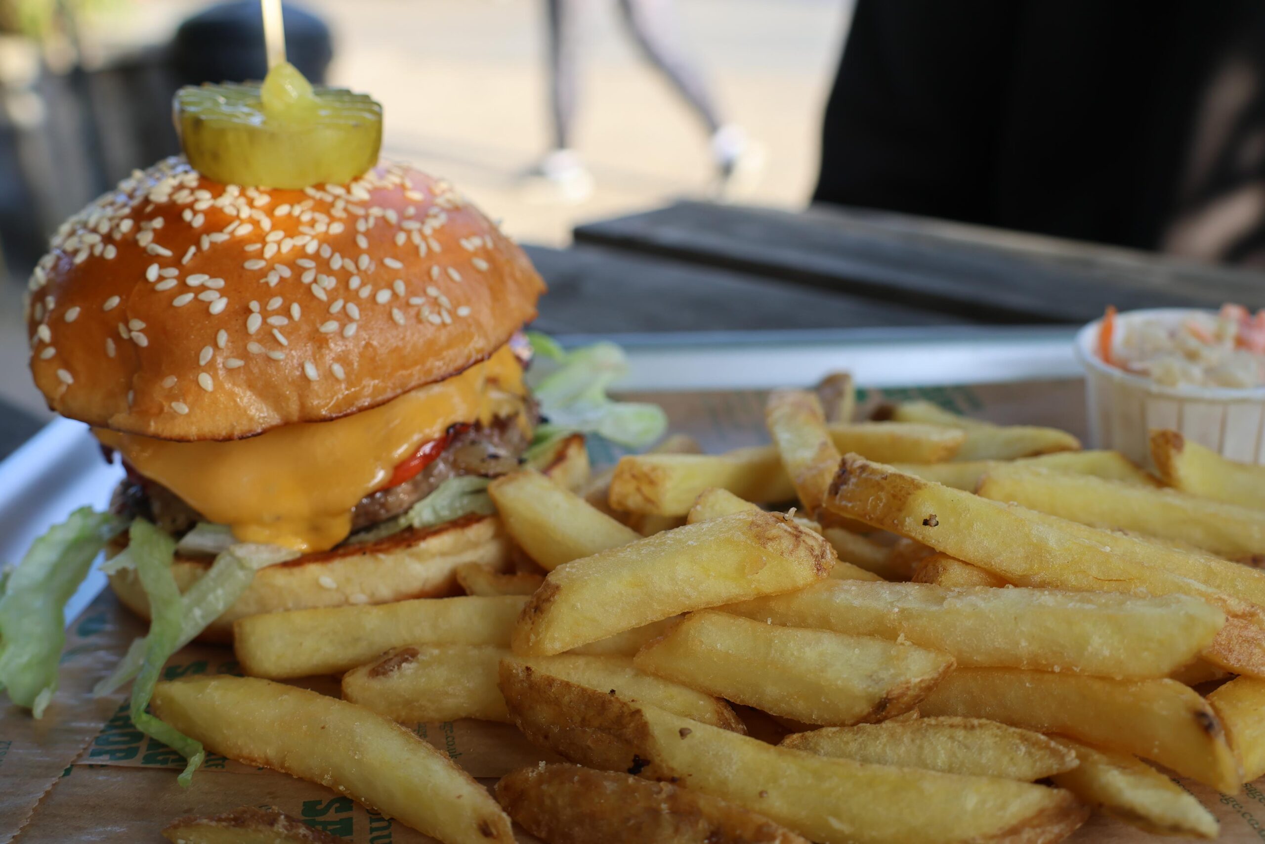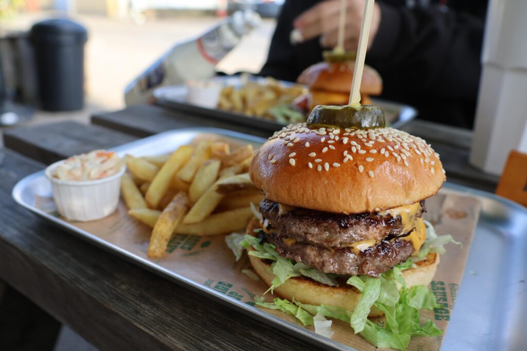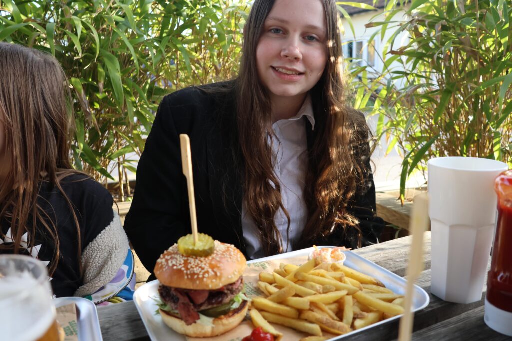 Kai went with the Crispy Chorizo burger which had a bunch of chorizo fried off, on top of his burger, along with caramelised onions, lettuce, cheese, pickles, and burger sauce. He also added his own mayo to it too. Kai said his burger was really good – his was messy in a very good sort of way – and he said it was filling. The burger looked great, to be fair, and he had upgraded his fries to have the truffle seasoning on them which he thought was the coolest thing ever.