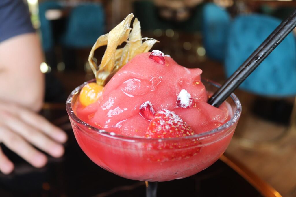 I got a couple of drinks to go with my meal at The Woodland Restaurant and Bar, while Dann opted for soda. I got the frozen strawberry daiquiri to start, which came out looking stunning! It was sweet, with tons of little toppings, and a great amount of drink too! I then wanted to try the frozen passionfruit daiquiri, which was also fantastic to try! Both had a bit of powdered sugar across the whole thing, which really brought it up to the next level.