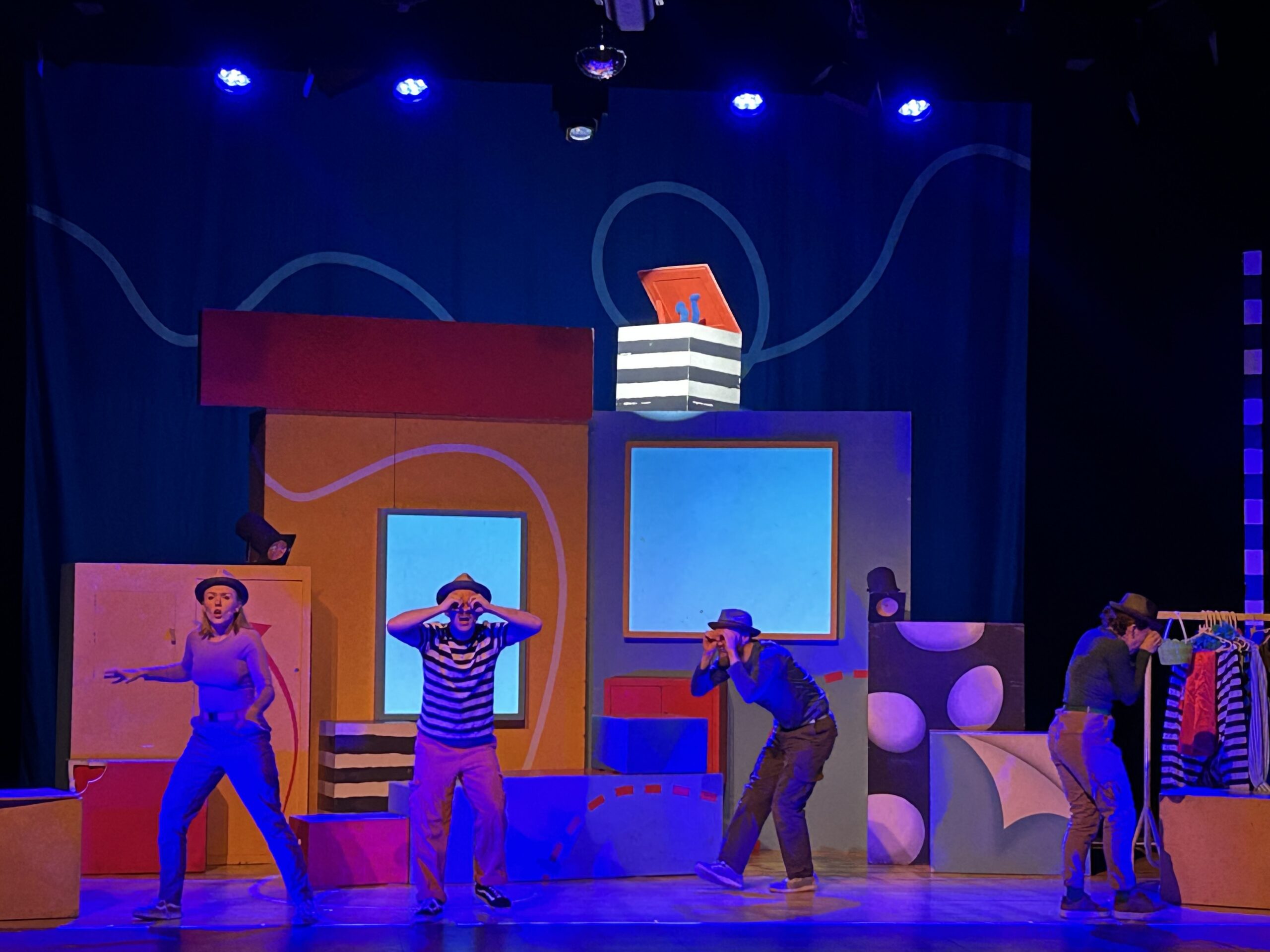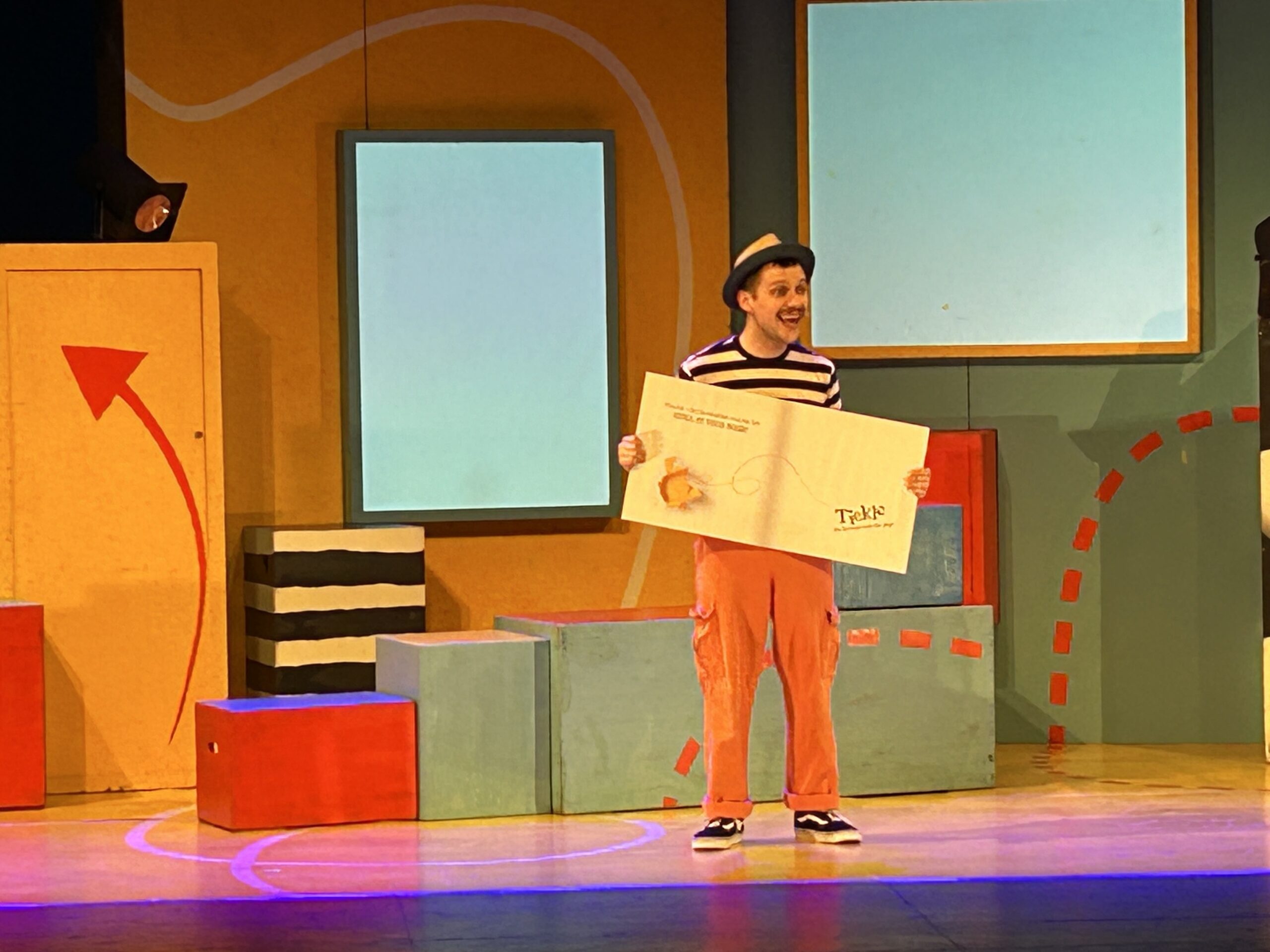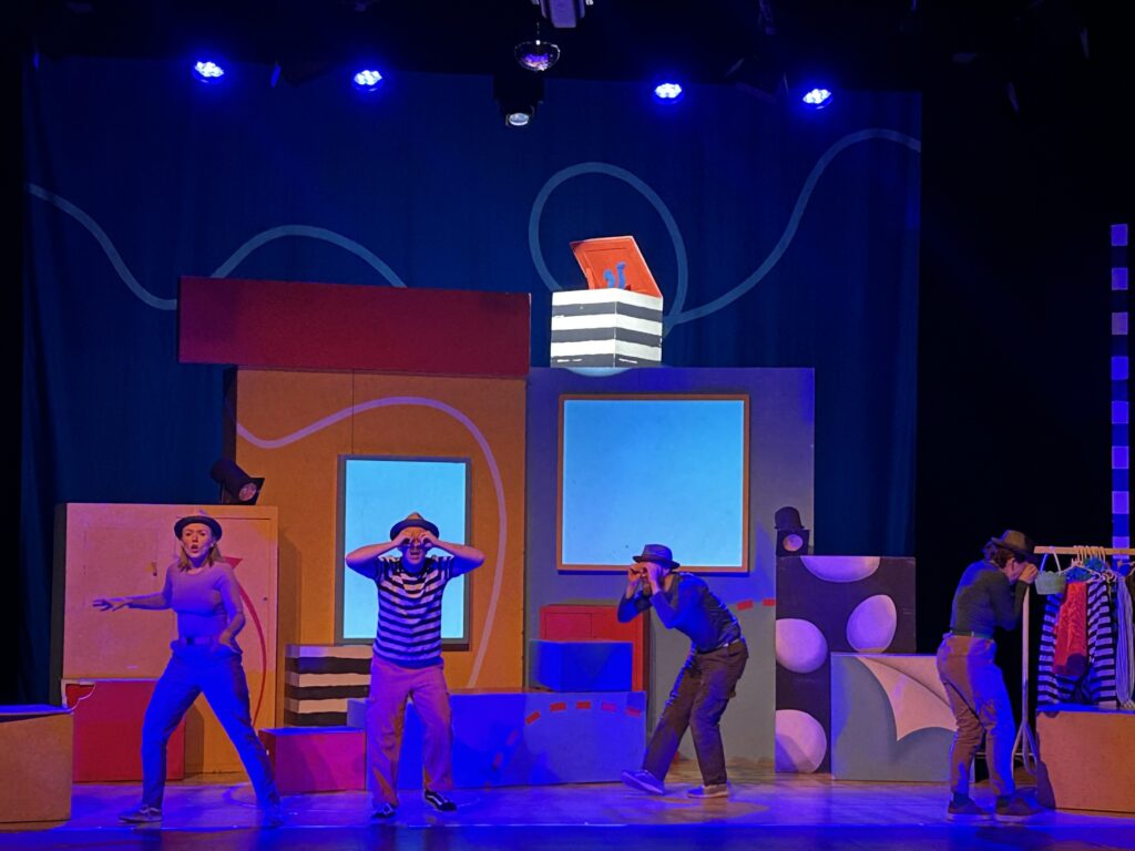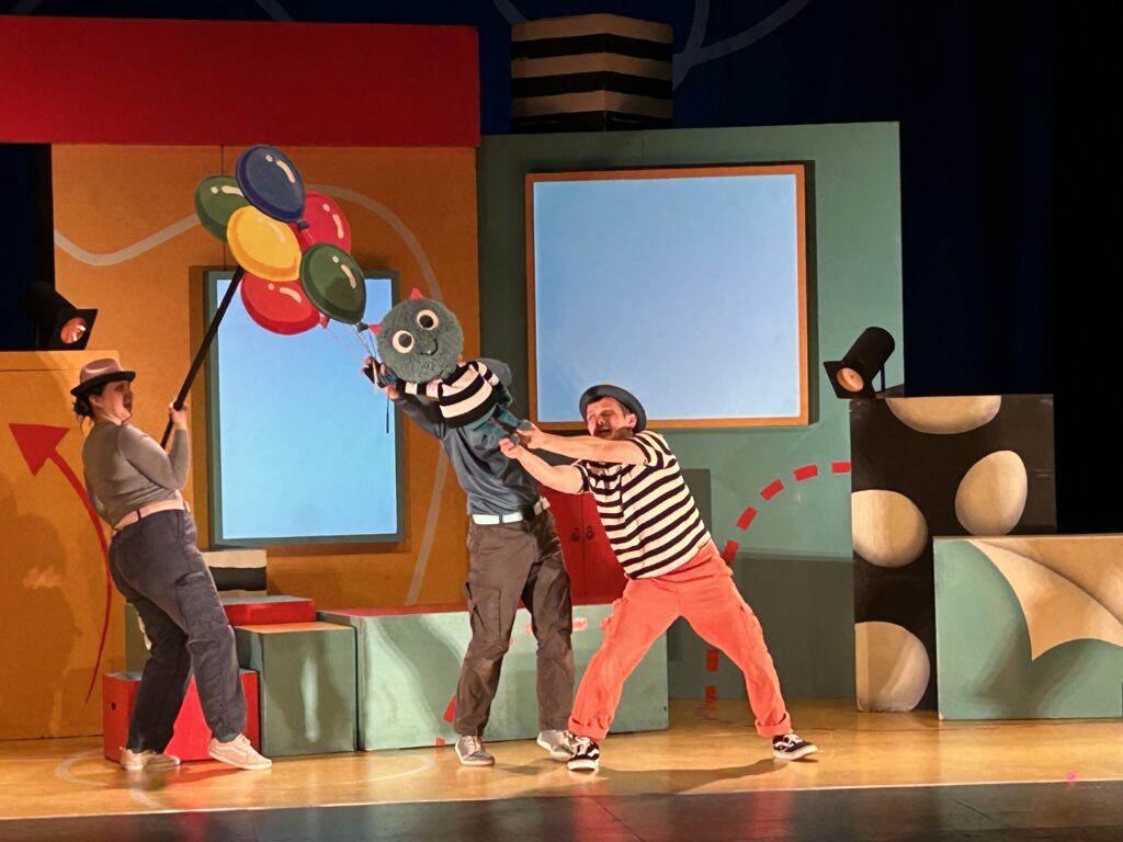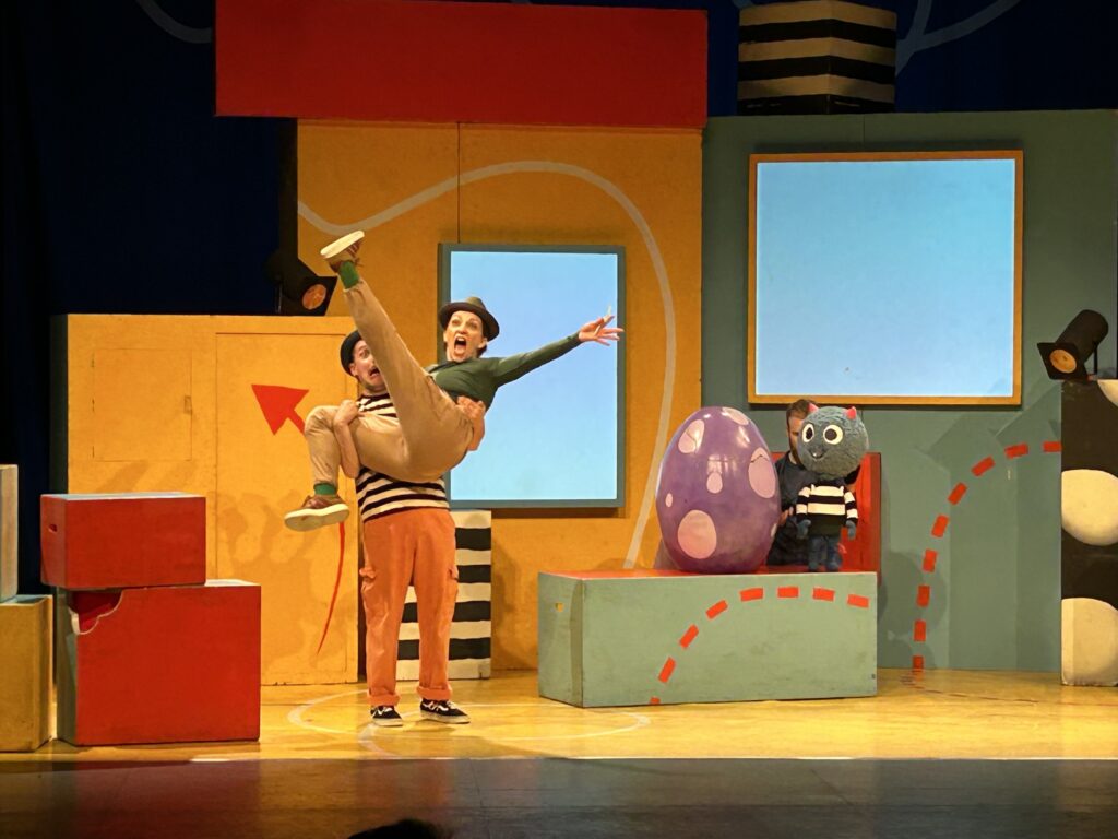 There’s a Monster in Your Show was a performance aimed at younger children, and as such, had a lot of movement and interaction right from the start. The cast were all throughout the seats, playing with the audience up until a bell rang and they made their way quickly on stage, talking about how they needed to prepare for the show later that day. The main character was actually the author of the books, taking centre stage and starting out with a song about how excited he was to be running his own play.
