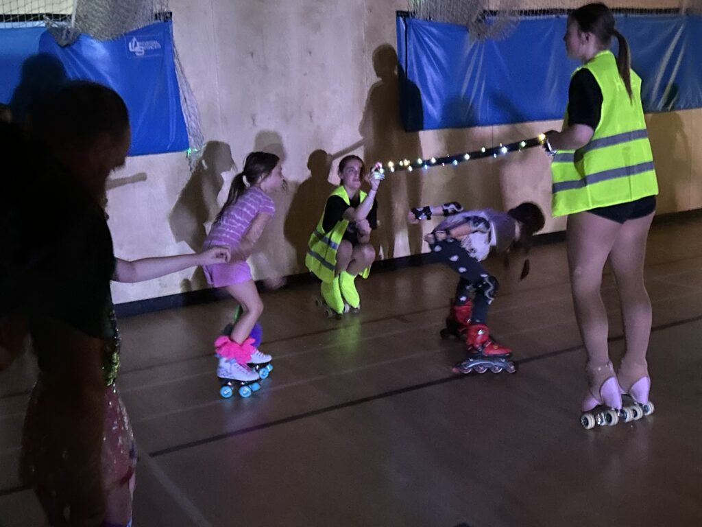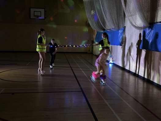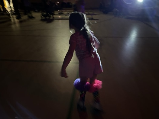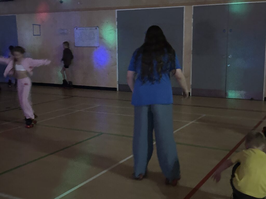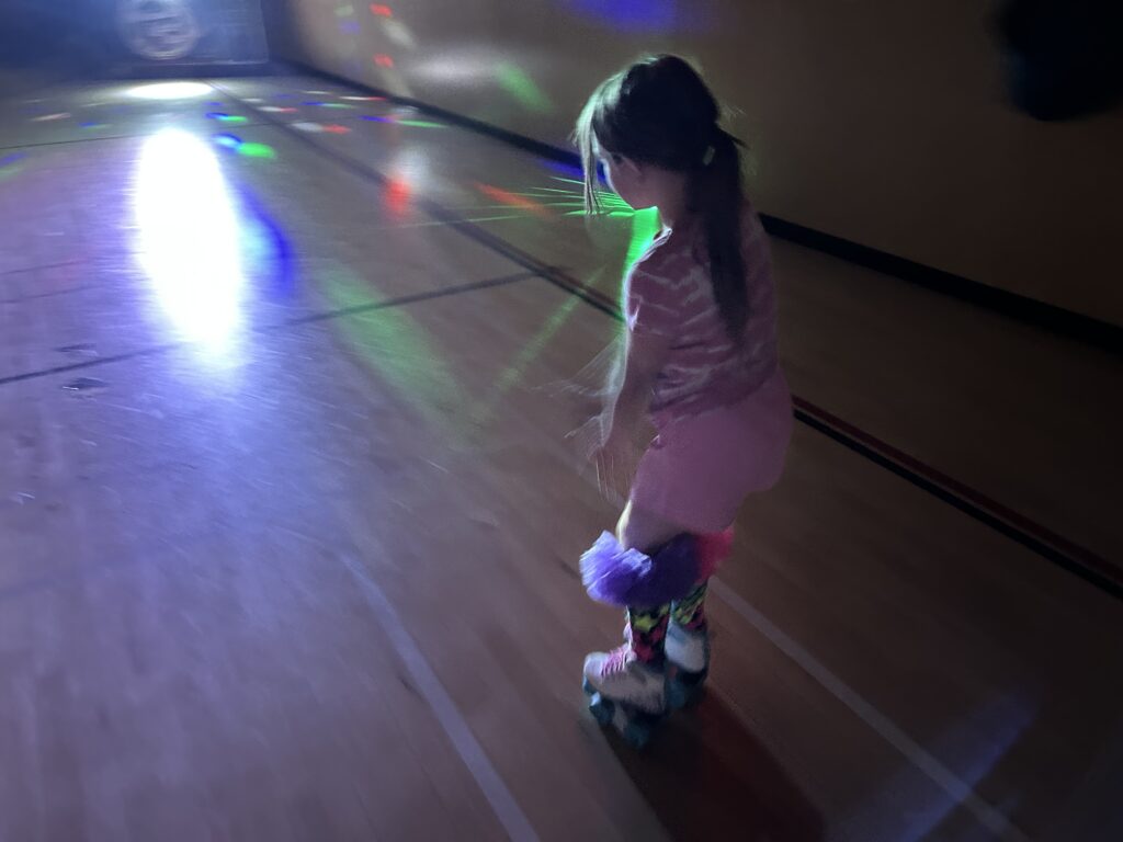 The DJ booth played a lot of fun music for kids, primarily from K-Pop Demon Hunter, but there were some games thrown in. YMCA, Get Funky, and the Macarena were all played with staff dancing along! They also set up a game of Limbo, which Robin went through about a dozen times, off towards the back. I do think the space was managed very well for what they had. There were a lot of younger children skating, and the lights were off for the majority of it, with the primary lighting coming from the neon lights along the side. This did make it a little hard to see, and towards the end, there were a lot of kids on the floor with their feet sticking into the “rink” which caused a few problems. I do feel after a few skate sessions this will be adjusted.