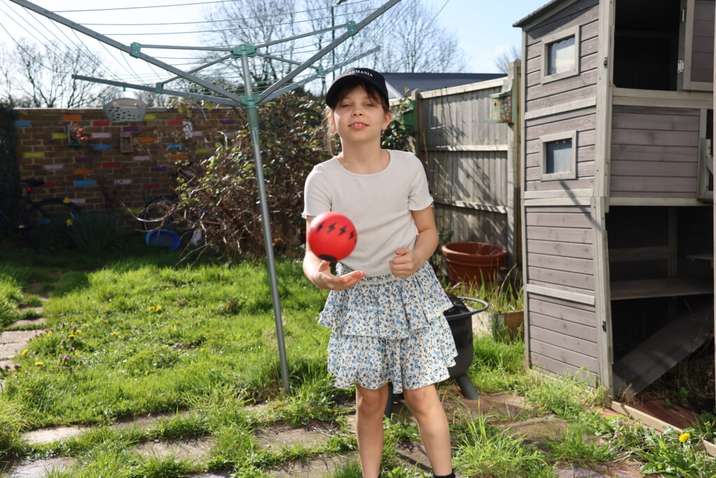 This ball does feel like it’s not going to break and as it’s made of a harder plastic, it doesn’t have the ability to pop or anything. Robin very much likes the red color and the little lightning bolts on this version of the Zzzopla, which is always a plus too. The Zzzopla Thunder Ball is a simple toy, but one of those types of toys that feels ideal for outdoor play, especially as the weather warms up and kids are playing in the garden!