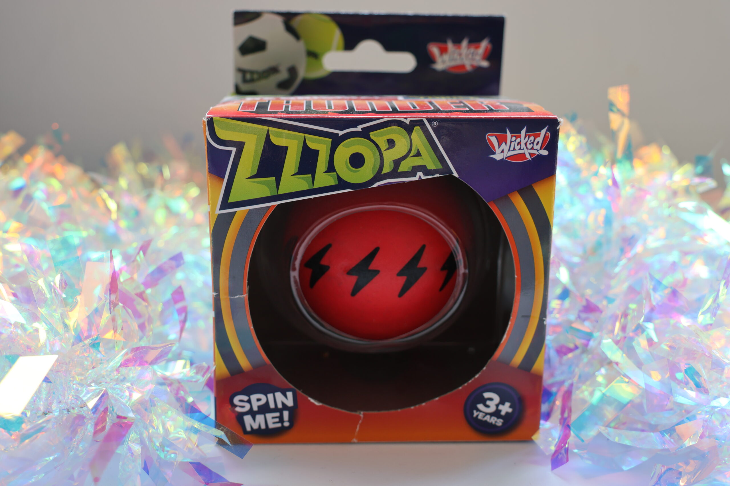 The Zzzopla Thunder Ball is a red ball that has a bouncy outside, but a sort of core in the middle that can spin. This allows you to spin the ball on your finger or on a surface, as a way of playing with it. When we first got the Zzzopla Thunder Ball, we thought that this core might make it so that the ball ends up bouncing in strange ways, however, it is sort of set into the ball, not hitting the floor when you bounce it around.